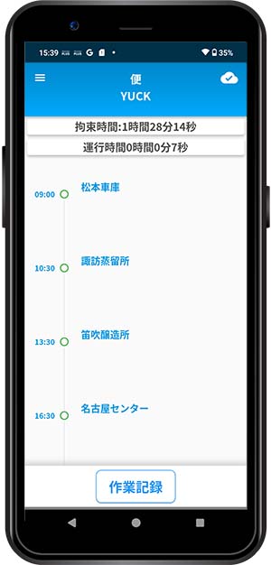 1回の業務中に複数の車両を運行することが可能です。また、1台の車両に2名のドライバーが乗車した場合にも対応しています。