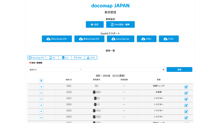 docomap Dashboardは、シンプルで分かりやすい管理者専用ページです。docomap GPS・docomap Eye端末やdocomap Vehicleから送信された位置情報と、DoCoMAP専用アプリケーションdocomap PLUSから送信された運行状況データをクラウド上で管理することができます。