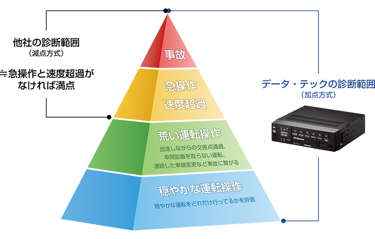 ドライバーの安全運転・エコ運転を分析しレポート化します。現在の運転レベル、運転改善状況が一目で分かるのでドライバーとのコミュニケーションツールとしても活用できます。